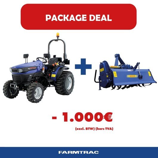 À l’achat d’un tracteur compact Farmtrac en combinaison avec une fraise Beroni, vous bénéficiez d’une remise allant jusqu’à 1 000 € (hors TVA).